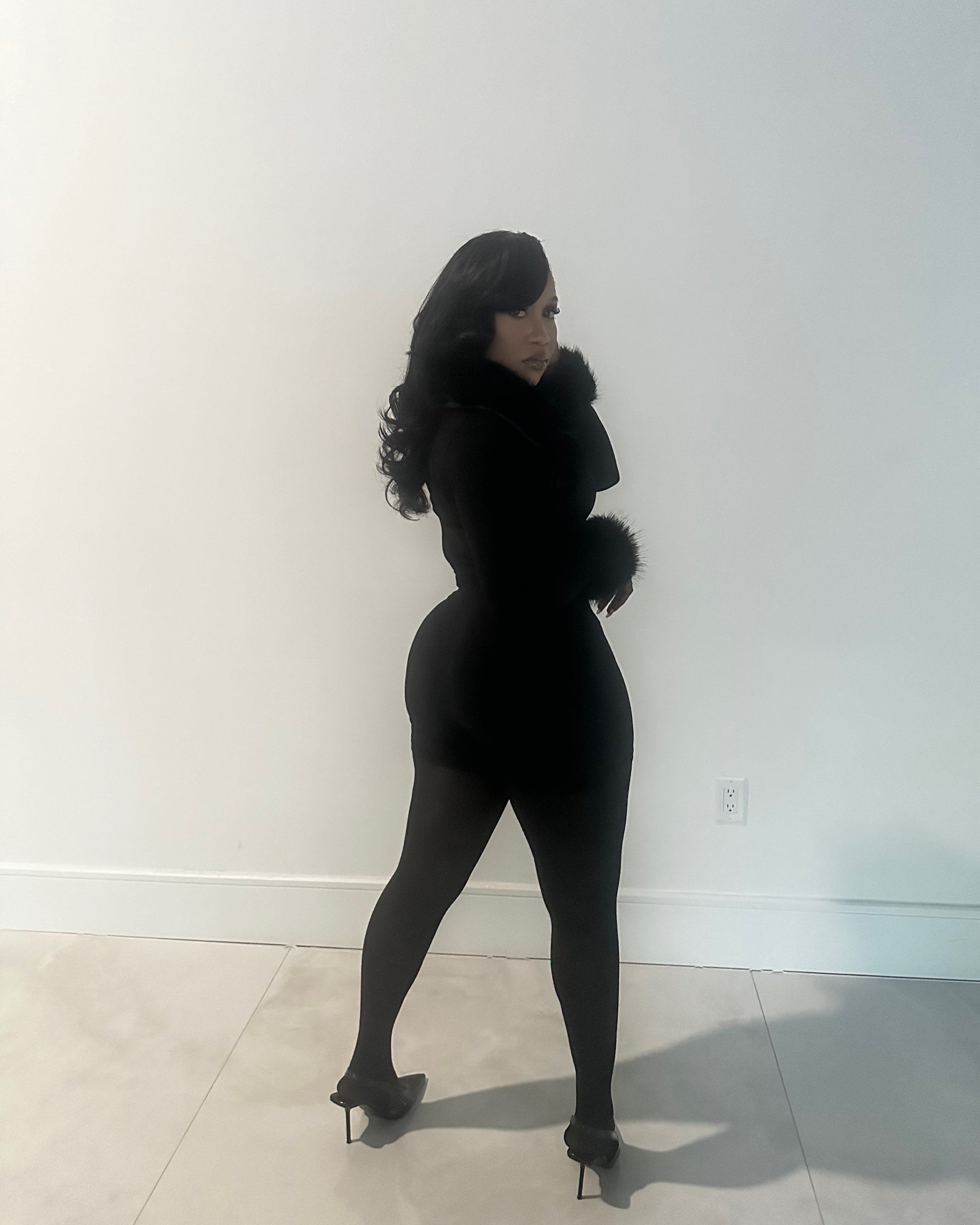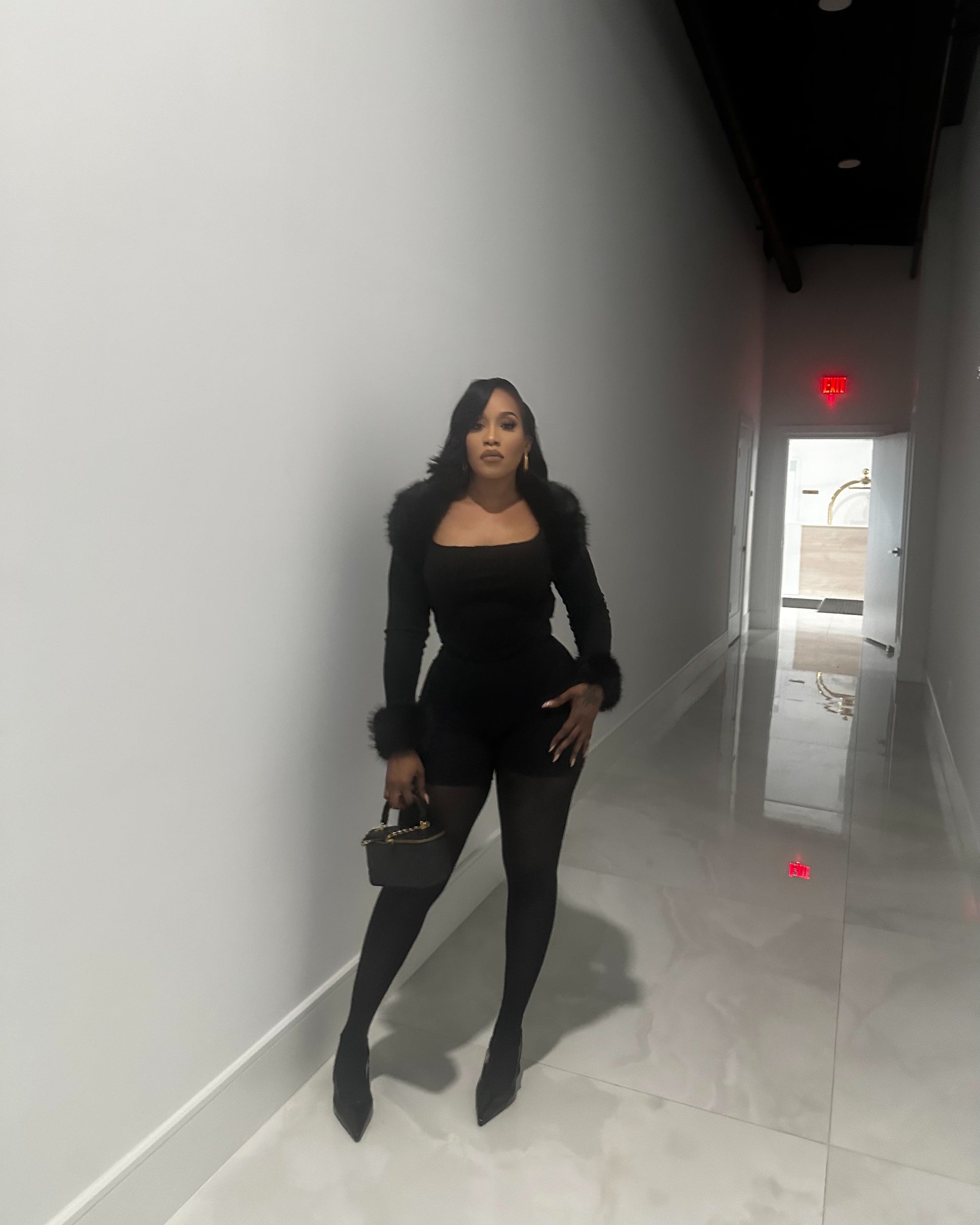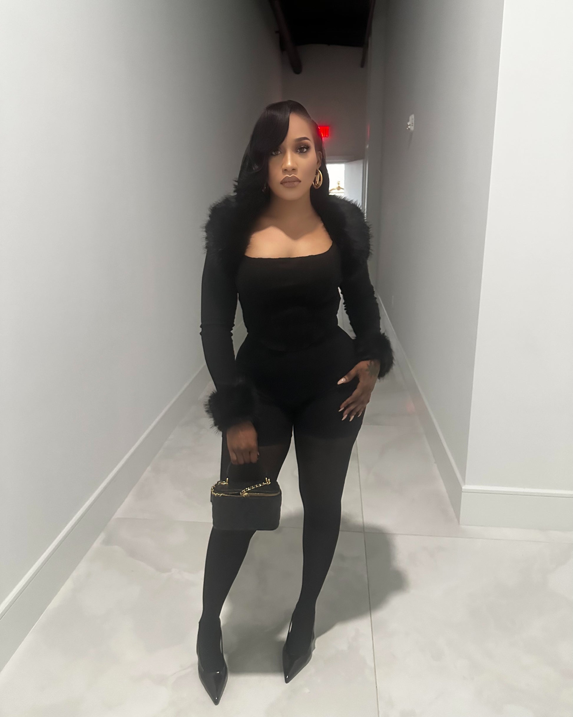 Long sleeve top with fur collar and fur sleeve detail💖